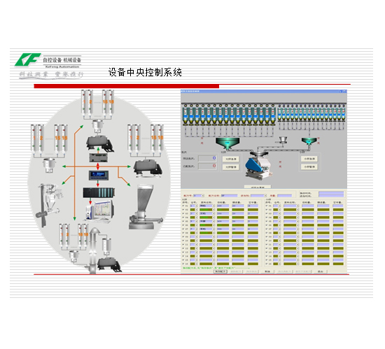 系統(tǒng)計量精度符合國家技術(shù)監(jiān)督檢定規(guī)程電子料斗秤標(biāo)準(zhǔn)。生產(chǎn)過程中它可以按工藝流程要求,根據(jù)預(yù)定配方,對多種物料按固定比例重量值將物料加入稱重料斗內(nèi),當(dāng)顯示的稱量值達到預(yù)設(shè)數(shù)值時(即完成每一種物料的稱重計量),再按照卸料程序?qū)⑽锪弦淮位蚍植蕉啻涡度胫付ɑ旌显O(shè)備進行混合,以備成型或散料包裝。該微機自控系統(tǒng)具有設(shè)備全自動控制功能和稱重數(shù)據(jù)管理功能,可以記錄、打印配料數(shù)據(jù)。